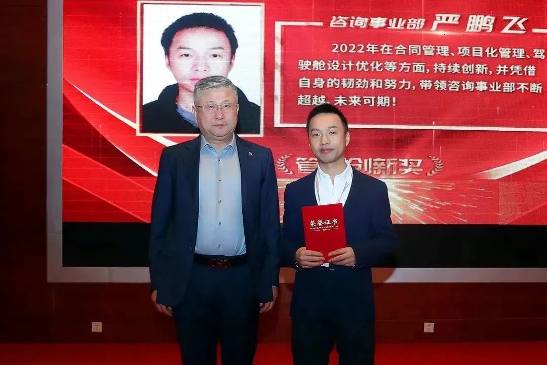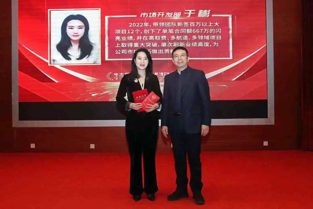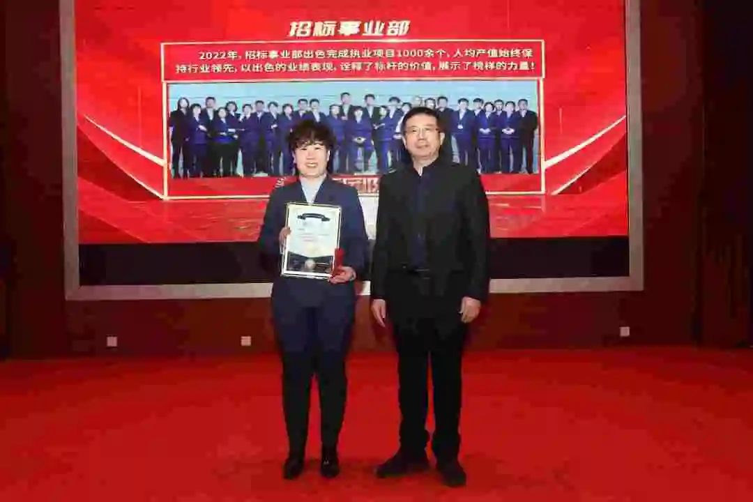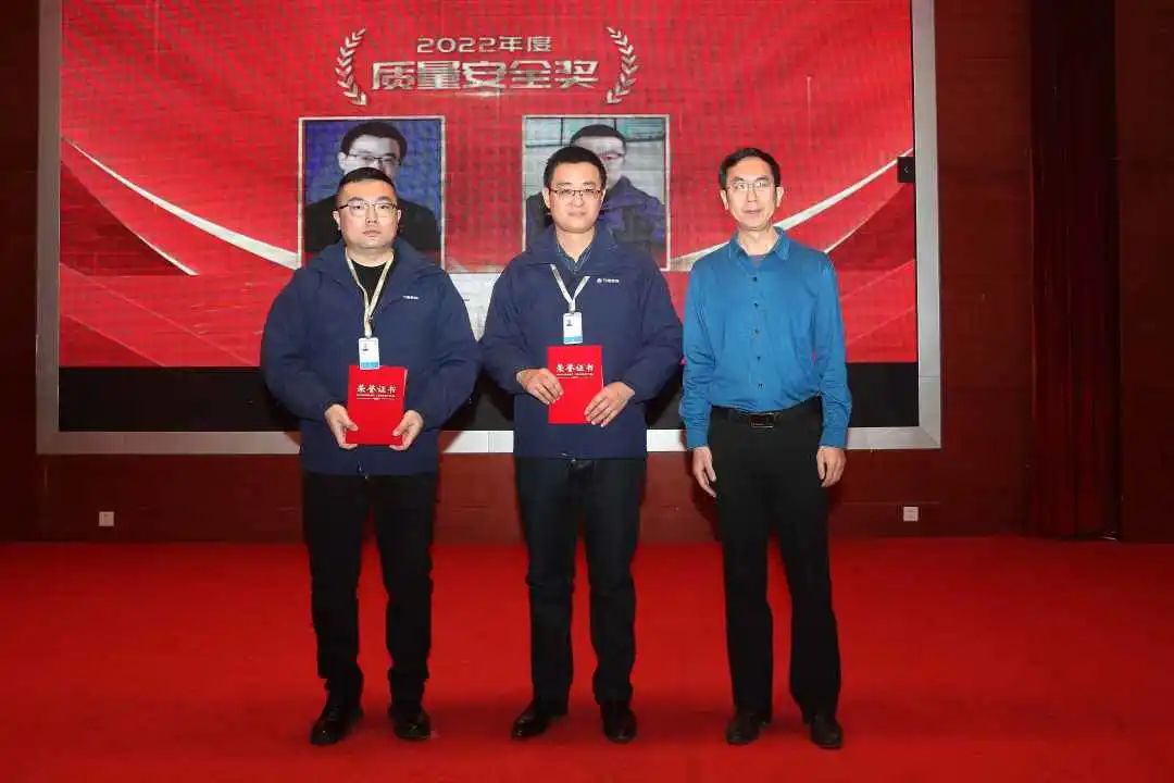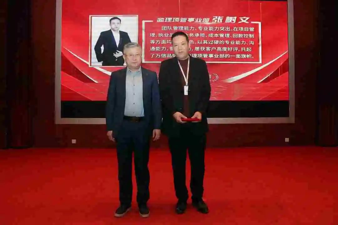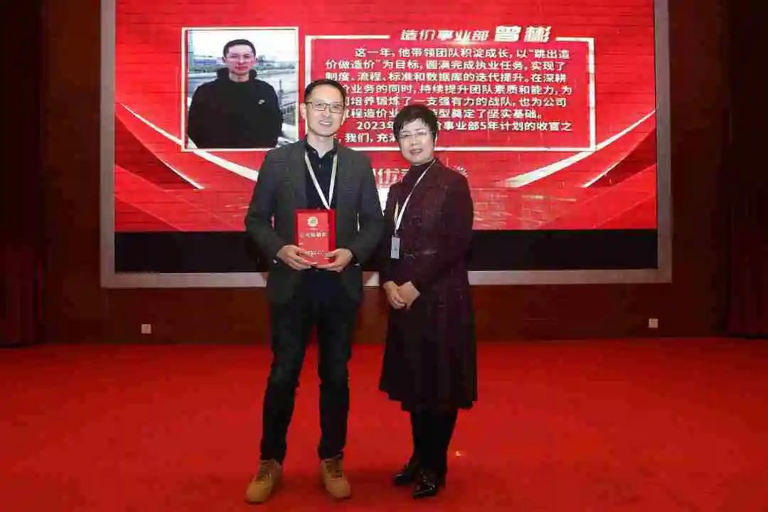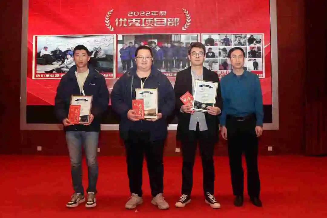 副總裁戰偉先生宣讀(dú)公司表彰決(jué)定。對公司2022年度先進團隊和先進個人進行隆重表彰,頒(bān)發瞭(le)優秀團隊、優秀項目部、管理精英、優秀員工獎、最佳新人獎、業務精英獎、質量安全獎等13個獎項,共計37名獲獎人(團隊)上台領獎。